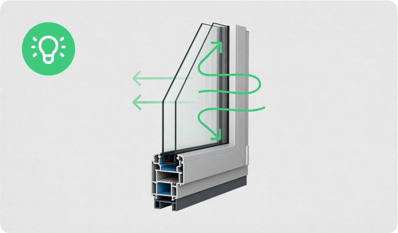 энергоэффективные стеклопакеты сохраняют тепло, снижая потери энергии и создавая уютную атмосферу в помещении.